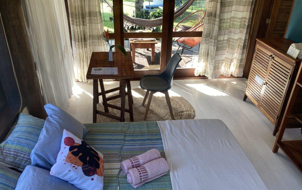 One bedroom located within the Ipê bungalow, with private bathroom and deck. No kitchen access.